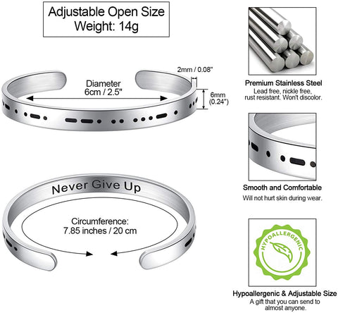 What makes the Morse Code Bracelet so special? - Is that it can be worn anytime, anywhere, by anyone. The unique bangle-style, stainless steel bracelet comes in a wide range of sizes and can be put on even the smallest of wrists. Whether you are wanting to profess your love to the women of your dreams or want to tell the sweetest guy you know that he is the one for you.